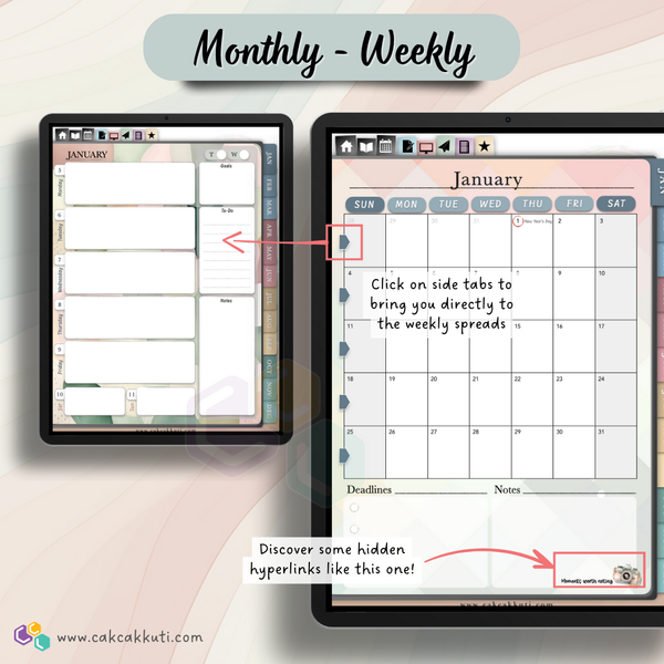 • Digital planner in .pdf format - 120 pages (4:3 ratio format, pages can be duplicated if using note-taking apps, portrait layout, fully hyperlinked)